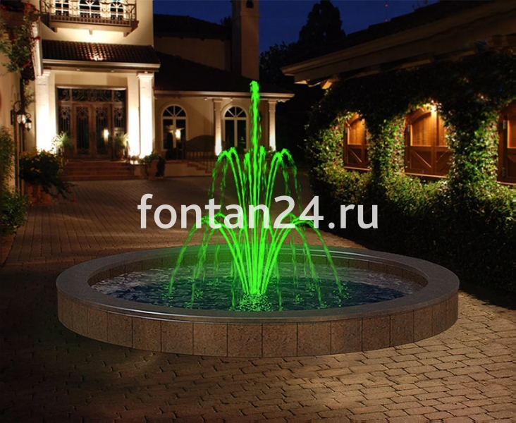 Статический - водная картина не меняется. Встроена программа переключения цветов подсветки. Высота струй может быть отрегулирована при помощи запорной арматуры.