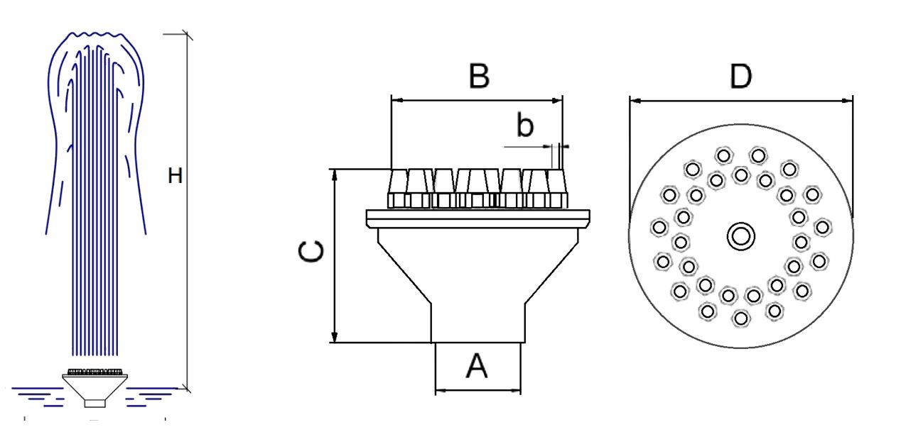 Распыляющая форсунка Foamy Column Jet формирует устремляющуюся вверх колонну воды. Пенный эффект обеспечивается добавлением нескольких небольших струй. Эта модель идеально подходит для больших уличных фонтанов. Обратите внимание, выходное отверстие насадки должно размещаться выше уровня воды в водоеме. Опционально можно заказать хромирование деталей насадки.