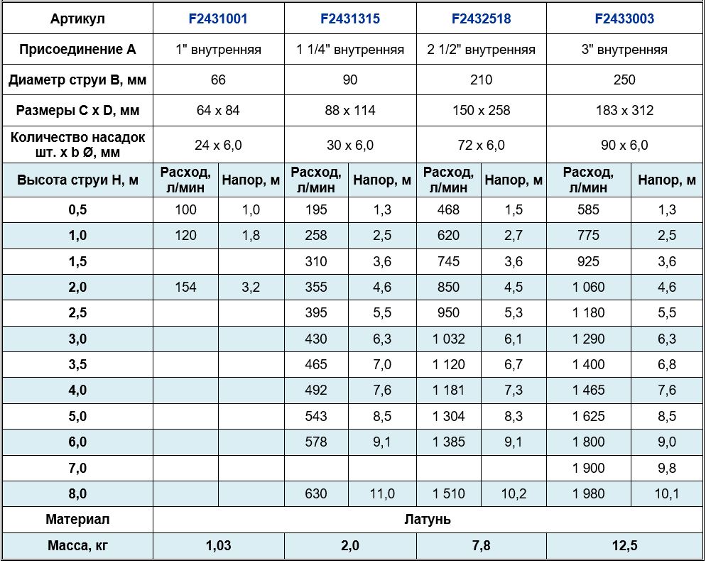 Высота струи max, м
